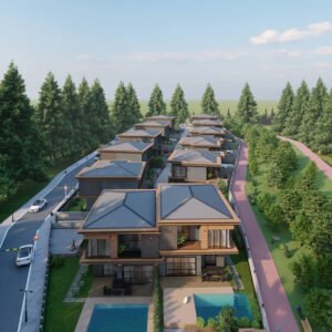 Zengin peyzaj alanları, ferah iç hacimleri ve özgün mimari anlayışıyla tasarlanan bu özel proje; doğayla iç içe bir yaşamın tüm olanaklarını modern konforla bir araya getiriyor.
